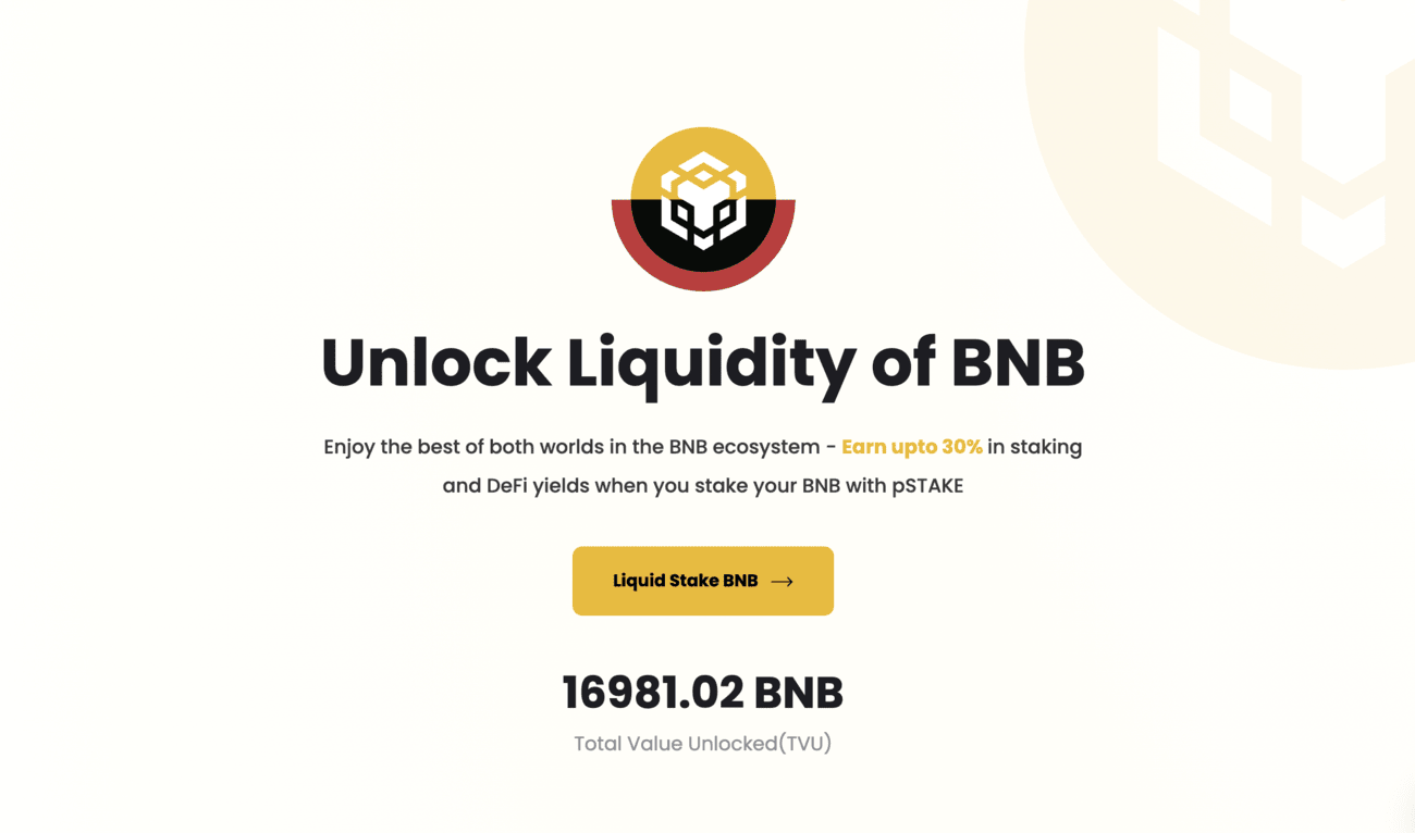Receive stkBNB to maintain liquidity of otherwise locked BNB when you stake and receive up to 30% in staking rewards with pStake.