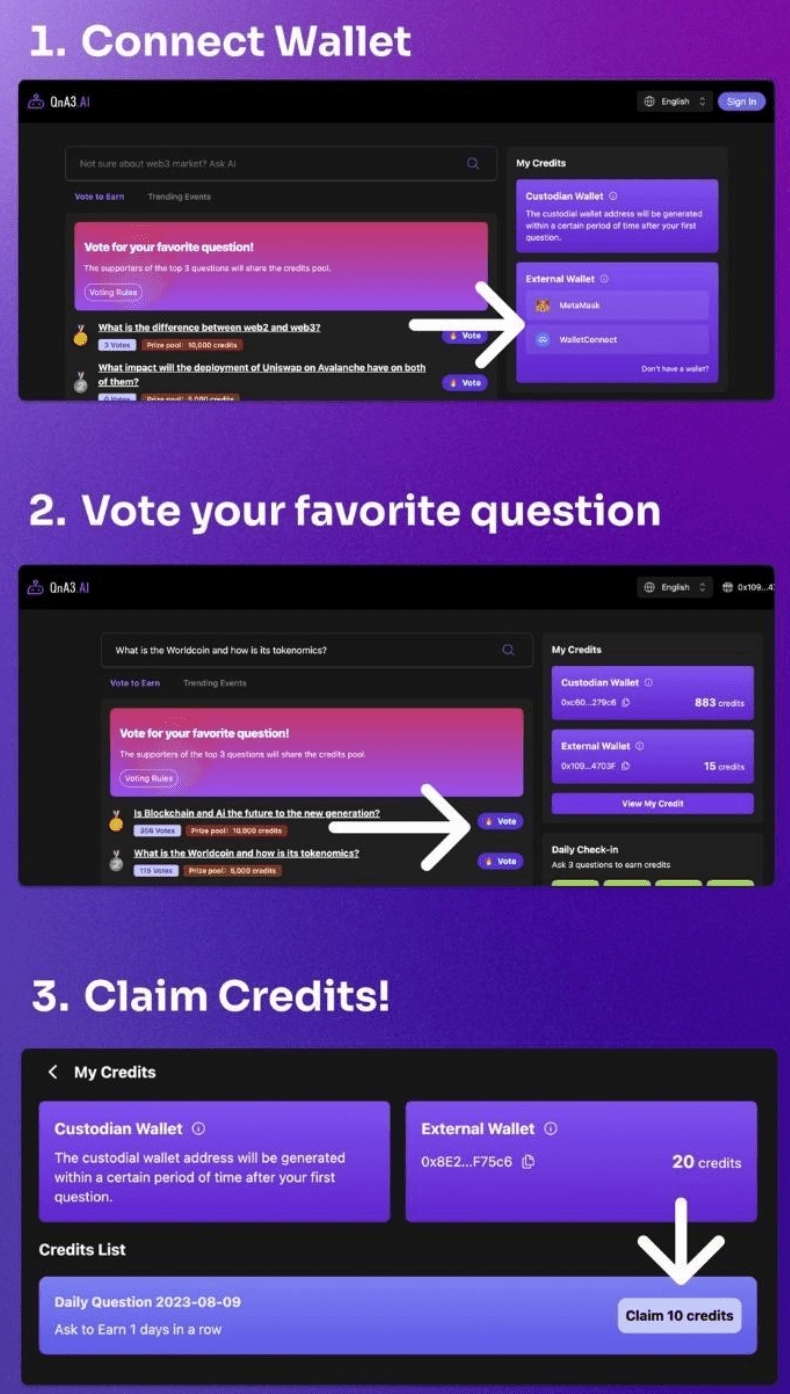 After the deadline of the event, users who have accumulated points can claim credits directly on the QnA3.AI website, following the instructions below.